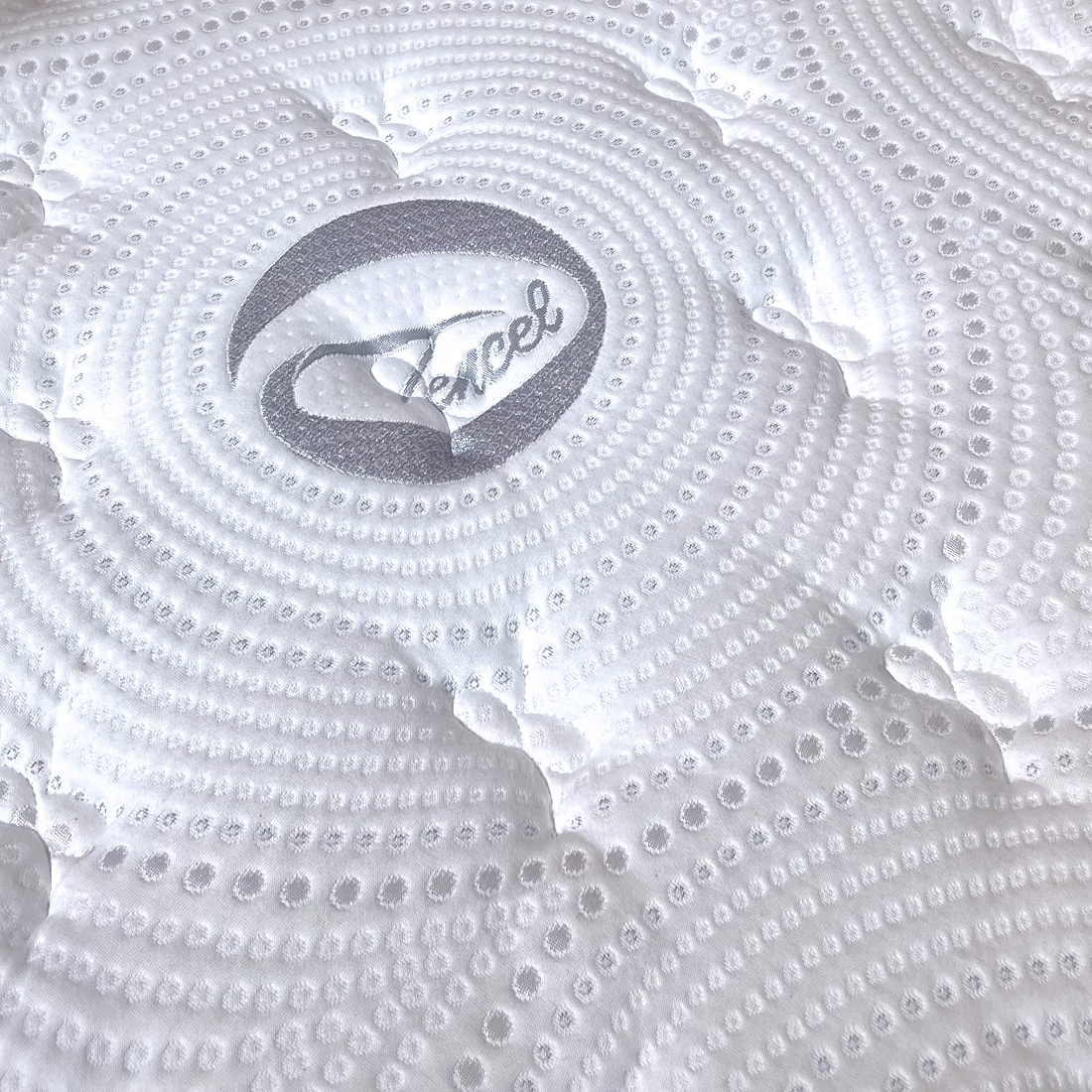 TENCEL™是萃取自木頭的木質纖維,木質纖維特色就是吸濕性很優越,強度高,親和肌膚,卓越的濕度調控,達到減少細菌生長的效果,超適合台灣濕熱的海島型氣候。天絲表面圓滑飽滿且細緻光滑,比起天然材質的羊毛與棉,表面最圓滑與飽滿,適合敏感型肌膚,更能提升睡眠品質。