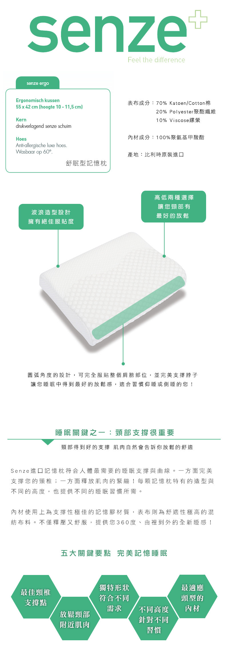 規格 : L55 * W42 * H10~11.5 cm 網路價 : NT$ 6,000 表布材質 70% Katoen/Cotton棉 20% Polyester聚酯纖維 10% Viscose縲縈 核心內材 100% 聚氨基甲酸酯 製造地 比利時原裝進口