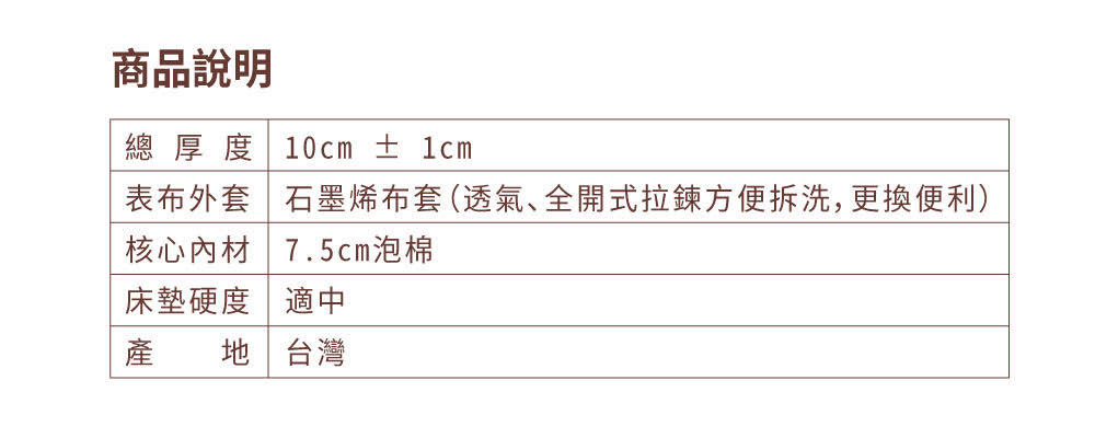 達文西 - 10公分薄床墊 (泡棉+石墨烯布套)